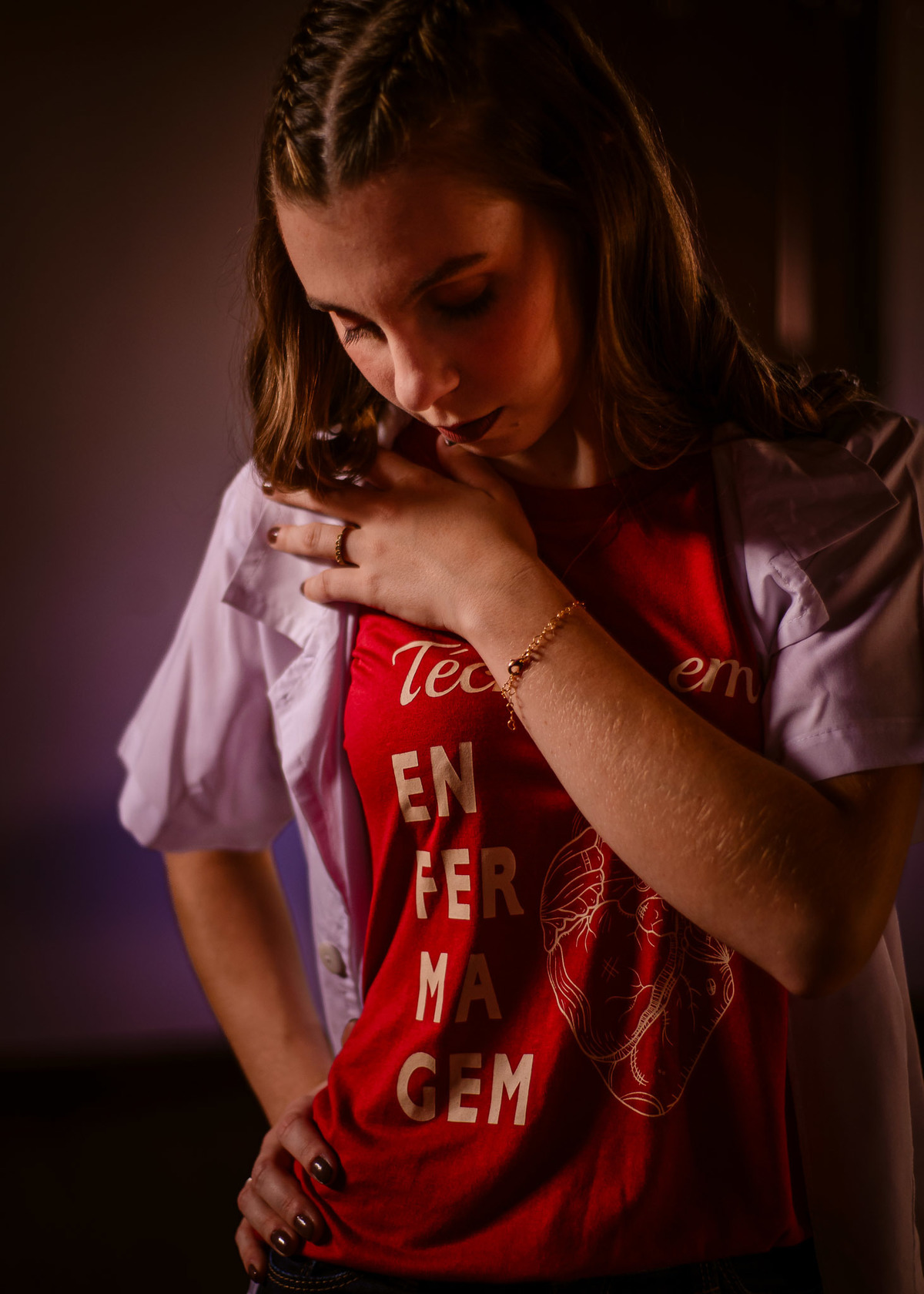 Há poucos passos de se formar em Técnica de Enfermagem, a Lu decidiu fazer um ensaio completo pra lembrar pra sempre desse sentimento, e aproveitamos todas as possibilidades - e até descobrimos a pressão da seringa no teto do estúdio! KKKKK